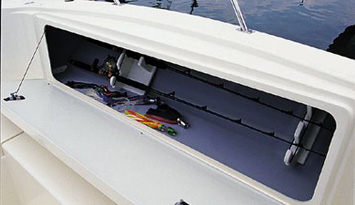 Lockable rod storage in gunwale, port & starboard