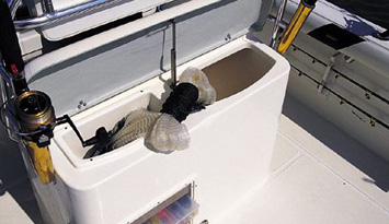 Insulated in-floor fishbox w/macerator pump out and overboard