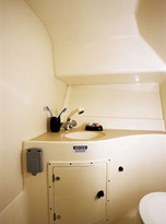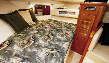 Double berth forward with storage underneath