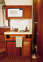 Galley w/neutral colored fiberglass countertop, S.S. sink w/pressure