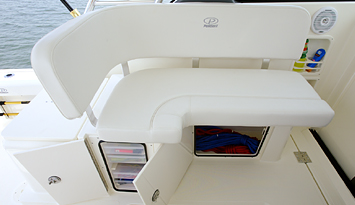 Swivelling oversized ladder-back helm seat w/mechanical sliding
