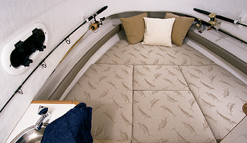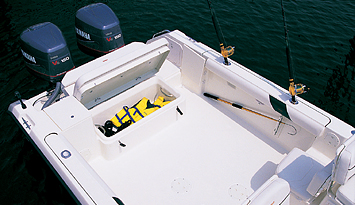 Molded-in hinged aft seat with fishbox/cooler underneath